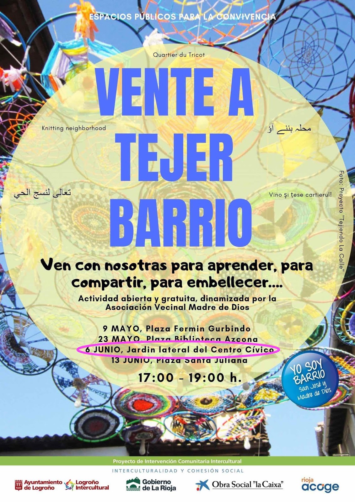 Tejedoras y tejedores en potencia de nuestros barrios, gente buscadora de nuevas experiencias, si tenéis manos para tejer e ideas para compartir, este jueves 6 de junio, tenemos una nueva oportunidad para enredar, charlar, hilar relaciones y crear atrapasueños de fábula para embellecer la plaza de la biblioteca Azcona, donde se celebrarán las fiestas del barrio. No la dejéis pasar.