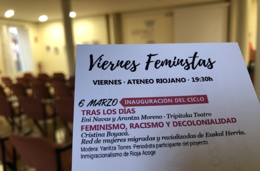 Ayer viernes 6 de marzo, en el Ateneo Riojano se inauguró el II Ciclo Viernes Feministas, con el espectáculo “Tras los días”, una obra intimista e impactante, interpretada por Eni Navas y Arantza Moreno de Tripitaka Teatro.