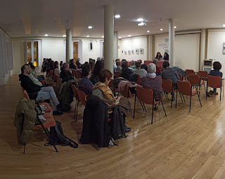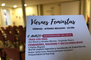 Con unas cincuenta personas asistentes, se hizo un recorrido sobre el feminismo en la historia de resistencia de los pueblos de América (Abya Yala) desde la invasión española. Así como una breve mirada a feminismos diversos y su relación con el racismo y colonialismo-colonialidad. Al cierre hubo oportunidad de que el público también interviniera, aclarara dudas, analizara la situación de las mujeres migradas, la importancia de los medios y de dar distintas visiones. En fin, fue una oportunidad de hablar de temas con un enfoque de género que apenas se conoce.