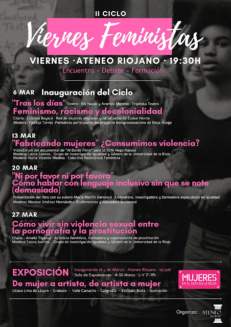 El próximo viernes 6 de marzo, a las 19:00 h en el Ateneo Riojano será la inaguración del II Ciclo Viernes Feministas, con el espectáculo “Tras los días” a cargo de Tripitaka Teatro interpretado por Eni Navas y Arantza Moreno.