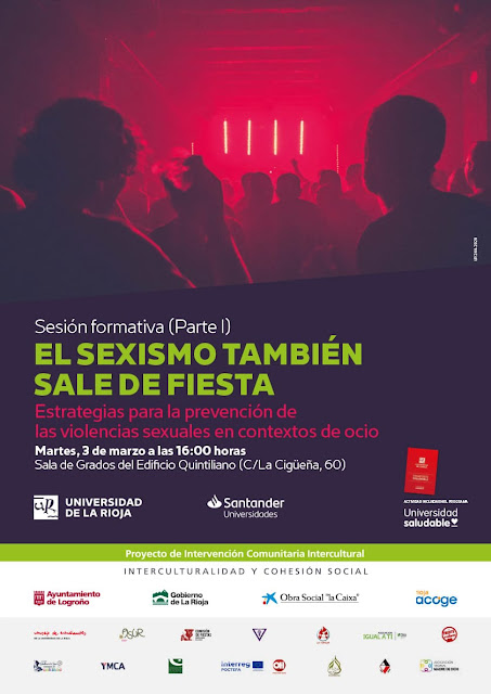 Podemos ir reservando hueco en la agenda. El Grupo de Convivencia en Fiestas Universitarias, en el marco del Proceso Comunitario Intercultural de San José y Madre de Dios, te invita a un, más que interesante -y necesario- Taller de Formación para dotarnos de metodología y estrategias que eviten las agresiones sexistas en contextos de ocio y de paso, nos ayuden a reorientar las celebraciones universitarias. Lo imparten las profesionales de la cooperativa Errotik.