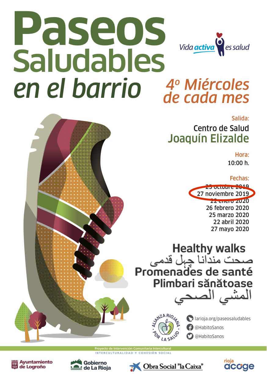 El próximo miércoles 27 de noviembre, a las 10:00 h. continúan los paseos saludables en Madre de Dios y San José con salida desde el Centro de Salud Joaquín Elizalde.