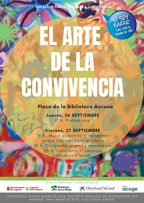 Pintaremos un mural colectivo en la plaza sin nombre (detrás de la Biblioteca Azcona), con pinceles para quien quiera participar, replantaremos el jardín vecinal de cara al otoño, degustaremos una merendola, disfrutaremos de las canciones de jóvenes artistas del barrio y finalizaremos con un enoooorme concierto de rumba con ¡¡Arrumako Band!!