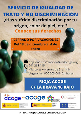 La atención presencial del Servicio de Igualdad de trato permanecerá cerrada del 18 de diciembre al 4 de enero.