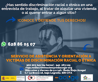 📌 Servicio de Igualdad de Trato y No Discriminación Rioja Acoge (C/La Brava, 16 bajo)